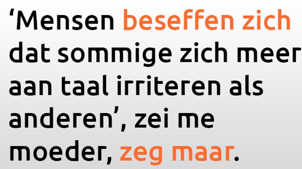 Waar ergeren we ons nu taalkundig het meest aan? Columnist Japke-d Bouma van NRC Handelsblad besloot het te onderzoeken onder haar twittervolgers. En daar rolde een top 10 uit die ze vandaag in haar column publiceerde.