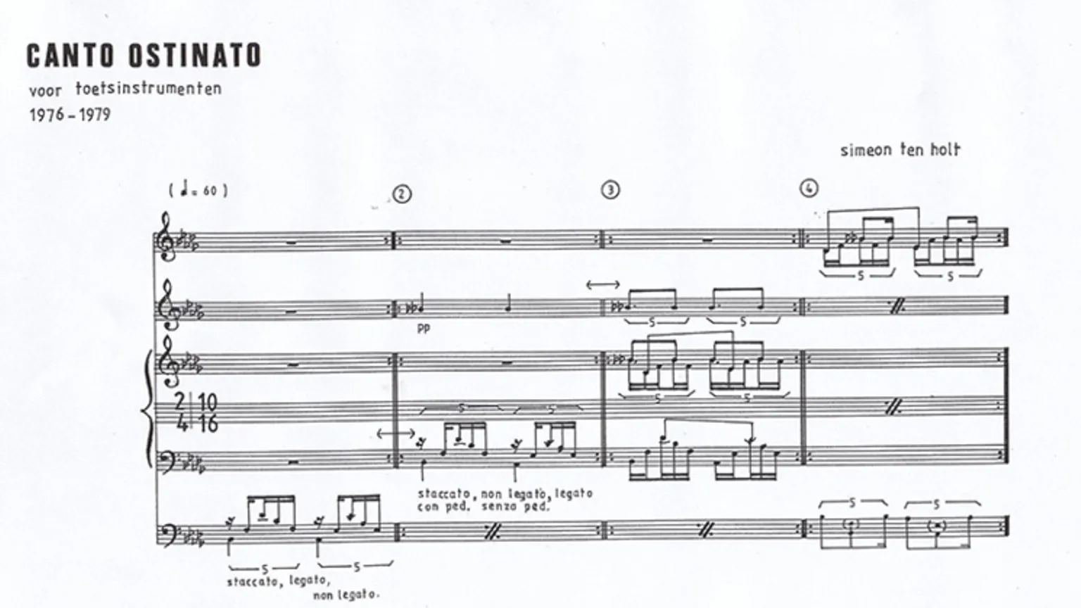 'Canto Ostinato' van de Nederlandse componist Simeon ten Holt is ongekend populair voor een modern klassiek stuk. Het wordt opgezet tijdens bevallingen en begrafenissen, en jaarlijks bezoeken duizenden mensen uitvoeringen van Ten Holts werk.