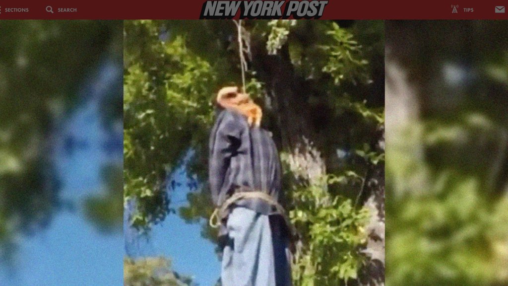 Volgens verschillende omwonenden die hebben geklaagd lijkt de Halloween versiering racistisch te zijn omdat het een zwarte pop is. het doet hen denken aan aan bomen opgehangen Afro-amerikanen door de Ku Klux Clan. Na hun kritiek heeft de eigenaar de pop een masker gegeven zodat de kleur niet meer zwart is. Hij zegt dat hij geen racistische bedoeling heeft en is niet van plan de pop weg te halen.