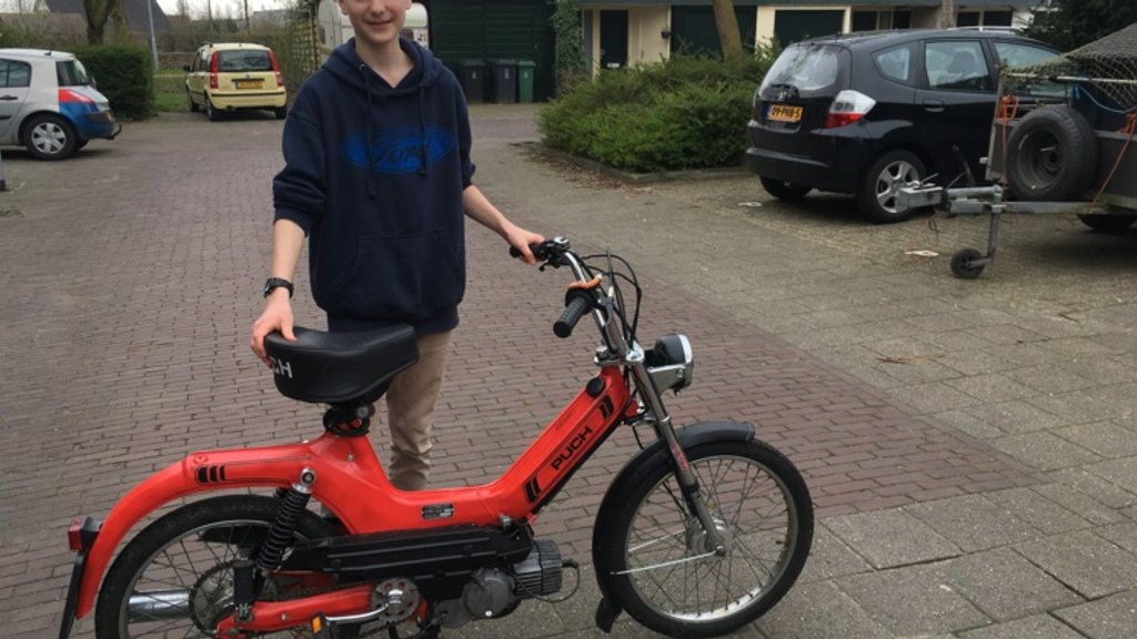 De havist kan niet wachten tot hij eindelijk brommer mag rijden of beter nog, auto als 18 jaar is. Tot die tijd sleutelt hij aan zijn brommer en heel soms rijdt hij er misschien een heel klein stukje op.