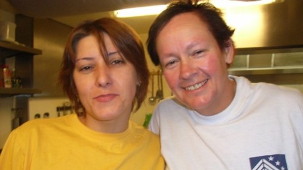 Hier sta ik samen met mijn Bosnische collega's in de keuken. Na een enigszins moeilijke start hebben wij het ontzettend gezellig met elkaar. Toen zij eenmaal begrepen dat ik dit leuk en gezellig vind kunnen wij het goed met elkaar vinden.