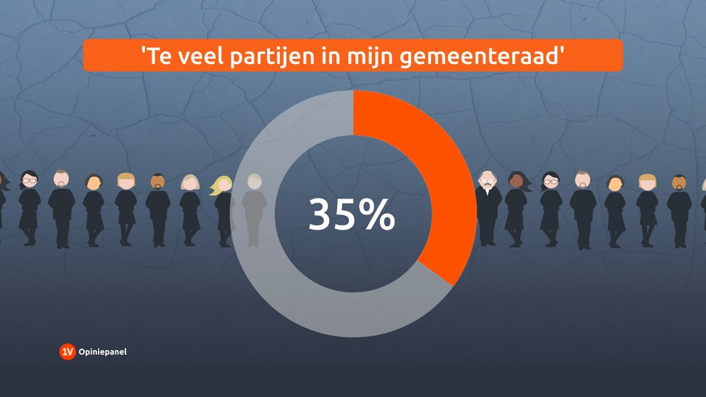 Ruim één op de drie (35%) actieve raadsleden vindt dat er eigenlijk te veel partijen in hun gemeenteraad zitten om goed te kunnen functioneren. Dat blijkt uit een peiling van EenVandaag samen met de Nederlandse Vereniging voor Raadsleden onder circa 1.400 raadsleden.