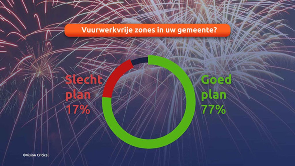 Zes op de tien ondervraagden (60%) zouden het liefst zien dat vuurwerk in hun eigen gemeente wordt verboden en dat daarvoor in de plaats een door de gemeente georganiseerde vuurwerkshow komt. Hier peilt EenVandaag al jaren draagvlak voor.