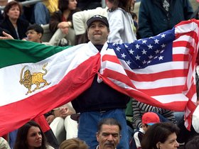 Een voetbalfan tijdens een vriendschappelijke wedstrijd tussen Iran en de VS in 2000